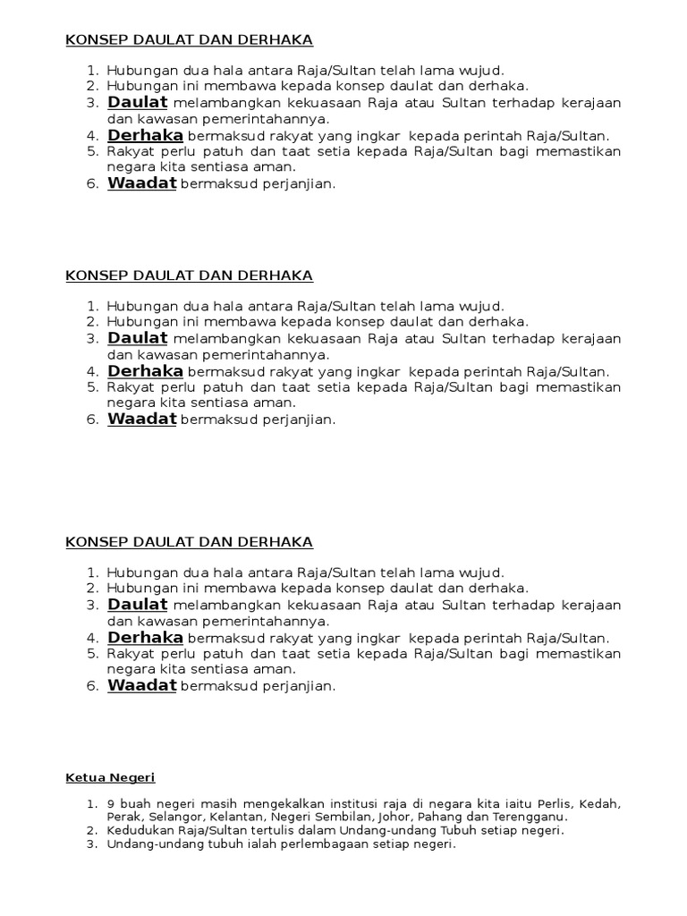 KONSEP WAADAT DAULAT DERHAKA KEDUDUKAN DAN PERANAN RAJA-RAJA MELAYU published by g-24008077 on 2021-02-03. 612 KONSEP DAULAT DAN DERHAKA. Konsep daulat dan derhaka ini ditegaskan lagi dengan anggapan bahawa Sultan-sultan Brunei merupakan Khalifah Allah atau Wakil Allah.