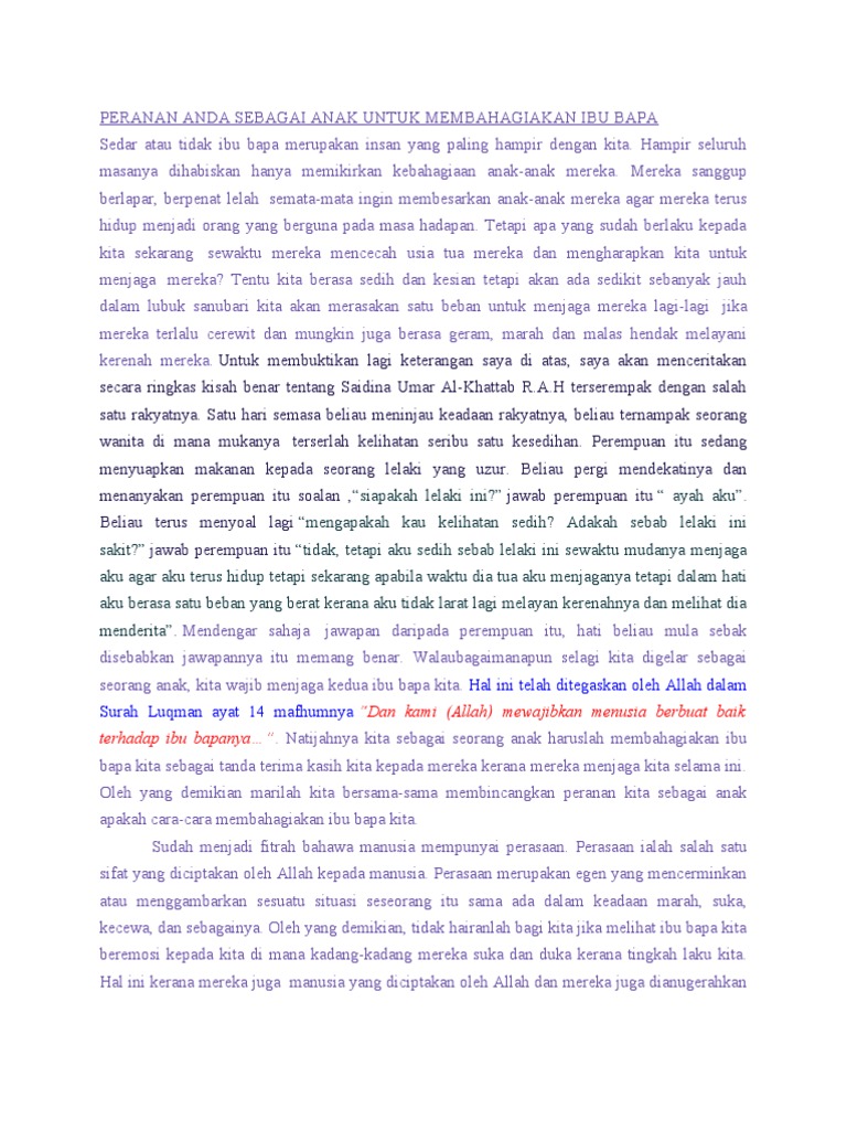 Di dalam Al-Quran juga Allah SWT dengan tegas menjelaskan peranan dan tanggungjawab anak terhadap kedua ibu bapa dimana Allah SWT menyuruh agar anak-anak sentiasa taat dan patuh kepada ibu bapa. Kurang Kasih Sayang Keluarga. Buli adalah perkara yang bukannya asing lagi dalam masyarakat kita pada hari ini.
