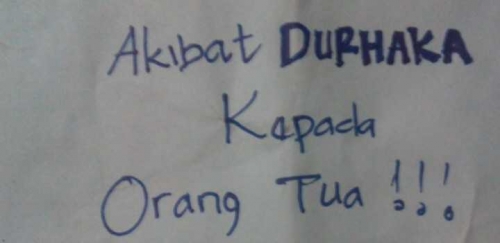 Malah jika anda ke Indonesia anda boleh melawat batu yang berbentuk manusia dan kapal pecah yang boleh dikaitkan dengan kisah balasan anak derhaka bernama Malim Kundang. Mereka akan mendapati bahawa mereka sudah menanam benih-benih kerosakan ke dalam jiwa anak. Sedihnya ramai tidak sedar sebenarnya ibu bapa juga menjadi penyebab utama sikap derhaka.