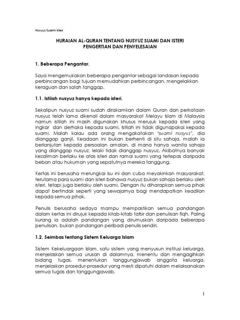 Dalam Al-Quran Surat An- Nisa ayat 34 disebutkan bahwasannya kaum lelaki suami adalah pemimpin bagi kaum wanita istrinya. ISTILAH SUAMIISTERI DERHAKA Anda semua nak tau takterutama yang belum pernah mendirikan rumahtangga lah. Keengganan isteri menunaikan kewajipan terhadap suami tanpa alasan yang munasabah mengikut hukum syarak.
