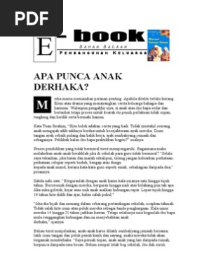 Insya mengenai anak derhaka. Setelah datang maka baginda pun murka akan anakanda baginda Raja Muhammad titah baginda Celaka si Muhammad ini. Anak Derhaka Menempah Neraka Dunia hari ini di paparkan dengan bebagai bencana dan musibahIni termasuklah penderhakaan anak terhadap ibubapa. Kecuali dengan kebiasaan asuhan dan didikan awal dari ibubapa.