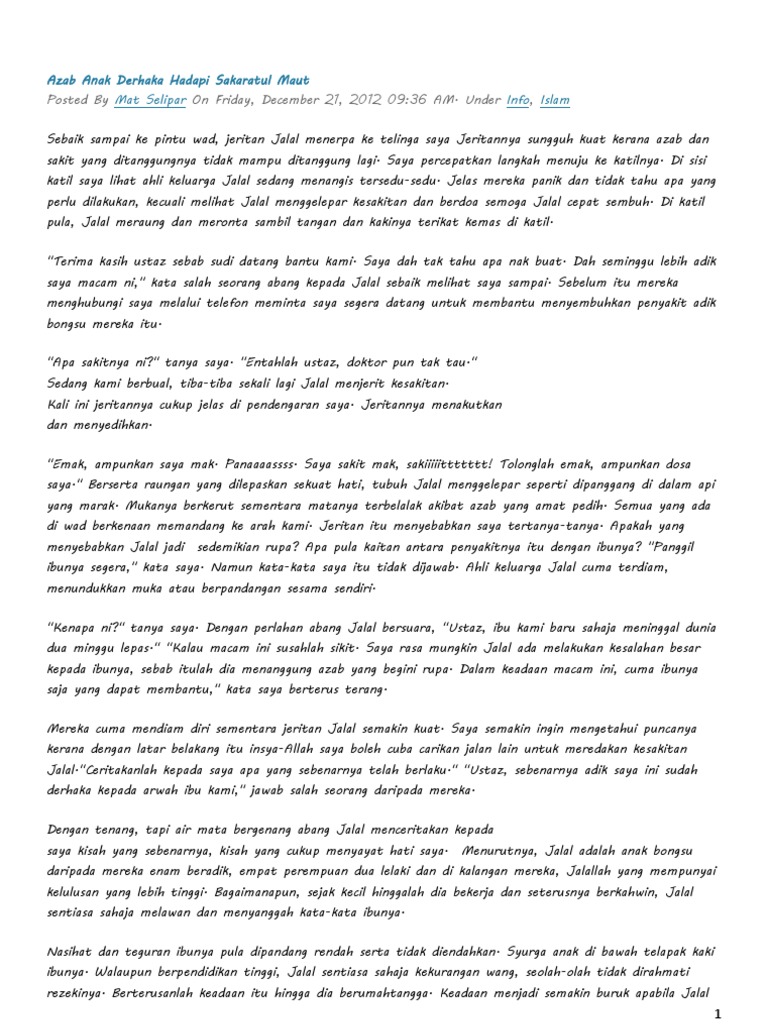 Azab Anak Derhaka Hadapi Sakaratul Maut Pdf