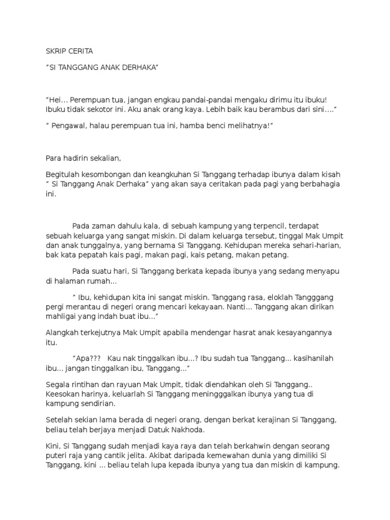 Semoga video ni boleh jadi pengajaran buat kita semua. Kalau benar-lah Si-Tenggang itu anak-ku besar dengan ayer susu-ku ini kau tunjokkan-lah sa-suatu balasan yang sa-padan dengan anak derhaka itu 3. Kalau suami jahat isteri akan khianat.